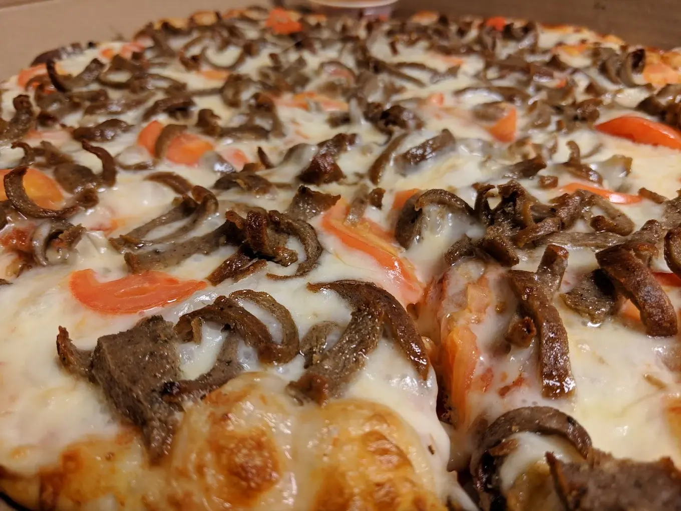 A delicious fusion of two favorites - crispy pizza crust topped with our house-made donair meat, fresh tomatoes, diced onions, and drizzled with sweet donair sauce. A unique creation that combines the best of both worlds in every bite.